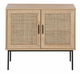 Úložné skříně nemusí být nutně jednotné a monotónní. Tato komoda s dvířky z přírodního ratanu vynikne a dodá vašemu obývacímu pokoji či ložnici boho atmosféru. Vrchní část komody můžete využít k vystavení dekorací, rostlin nebo knih a efektivně také využijte i prostorné skříňky pod ní. Černé kovové nohy vytvářejí barevný kontrast a také zajišťují stabilitu a odolnost.