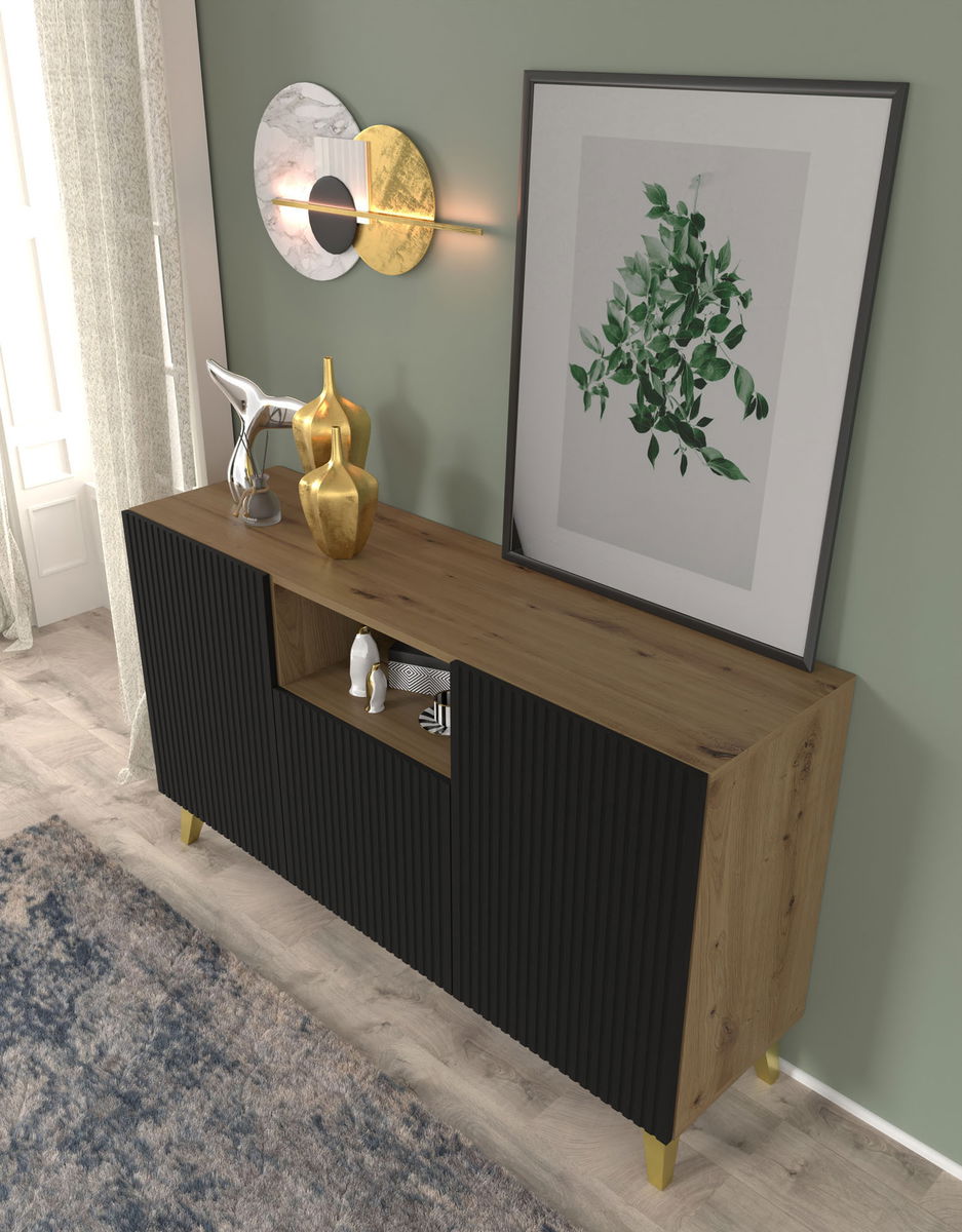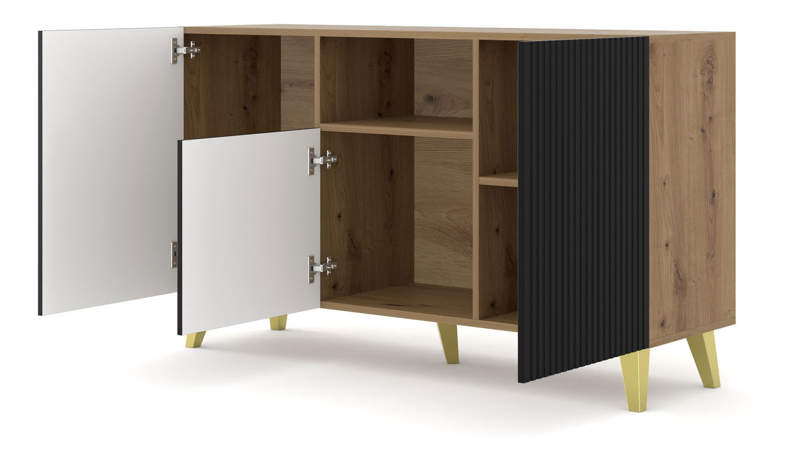 Skříňka PB 150 2D1S Rowanna (dub artisan + černá + zlatá)