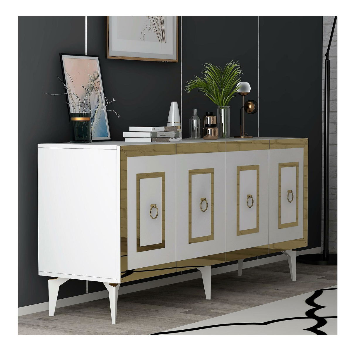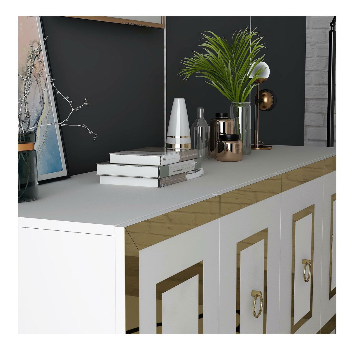 Skříňka Pemava 1 (bílá + zlatá)