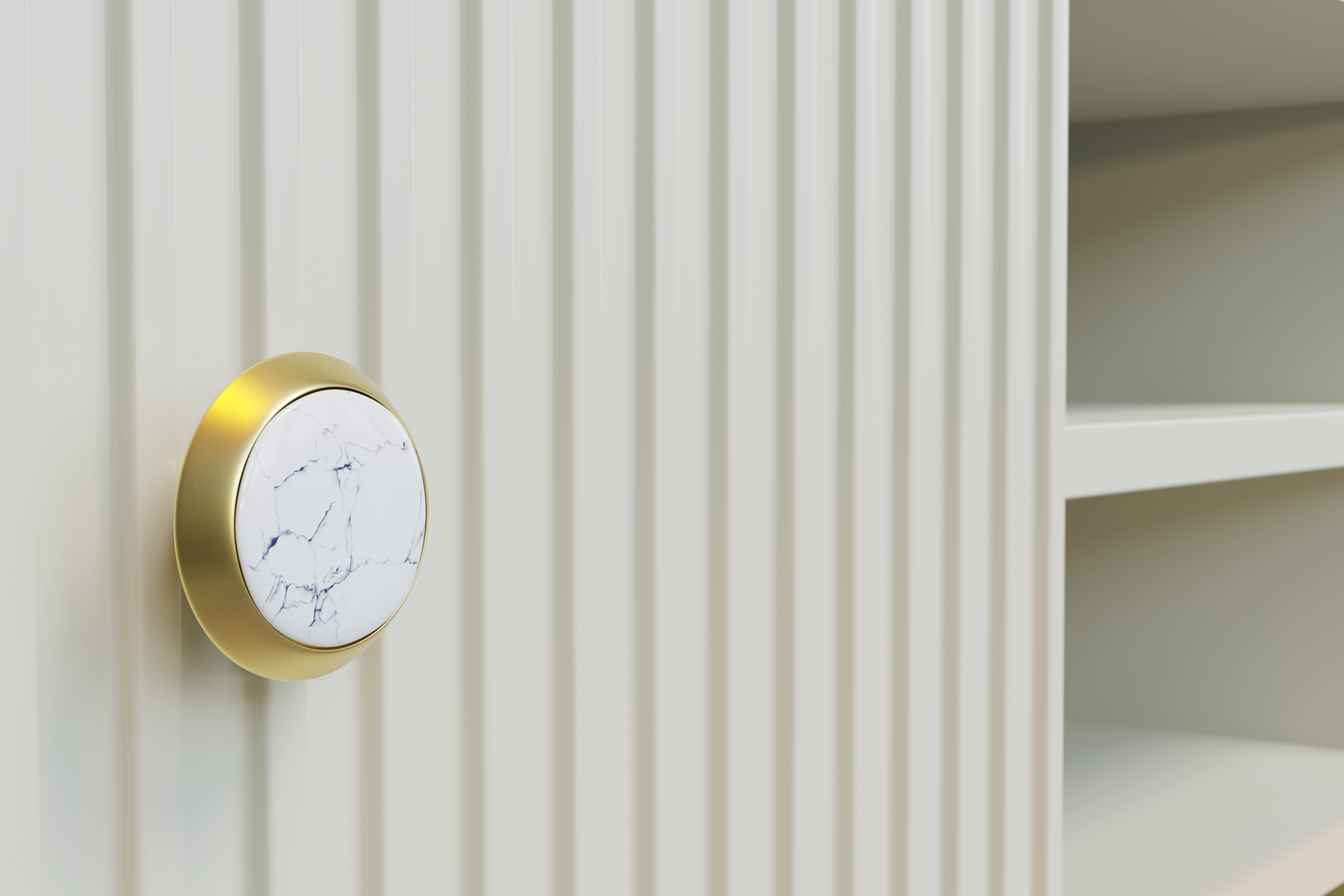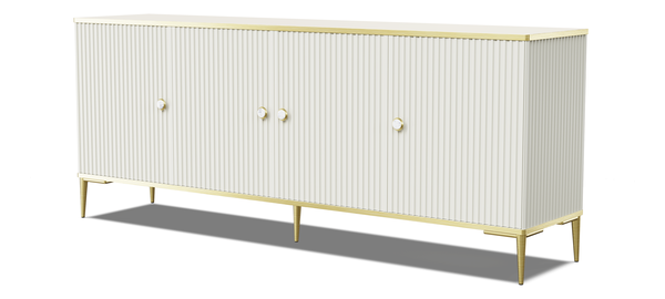 ZobrazitČtyřdveřová skříňka je ideální do elegantního obývacího pokoje, kanceláře nebo ložnice a zdůrazňuje luxusní charakter okouzlujícího nebo moderního interiéru. Její jedinečný design se vyznačuje precizním frézováním na předních a bočních stranách, což jí dodává jedinečný vzhled. Tato komoda zaujme nejen svým vzhledem, ale nabízí také funkčnost. Se čtyřmi dvířky a osmi dalšími policemi poskytuje dostatek prostoru pro uložení nezbytností, doplňků nebo oblečení, což usnadňuje udržování pořádku v místnosti. Zlaté kovové nohy a úchyty dodávají eleganci a zdůrazňují jedinečný charakter komody, díky čemuž je nejen praktickým, ale také stylovým dekorativním prvkem v každém interiéru.