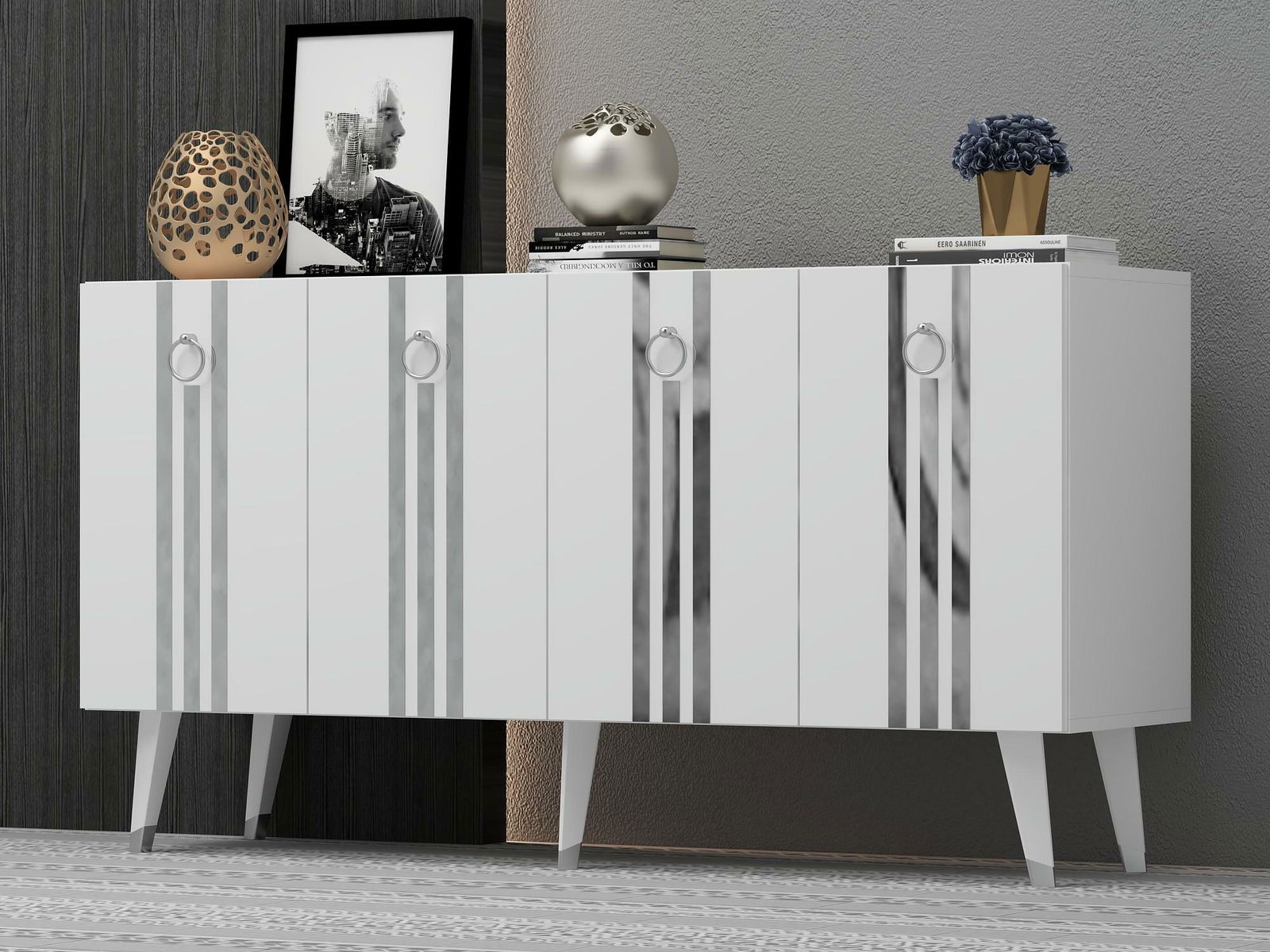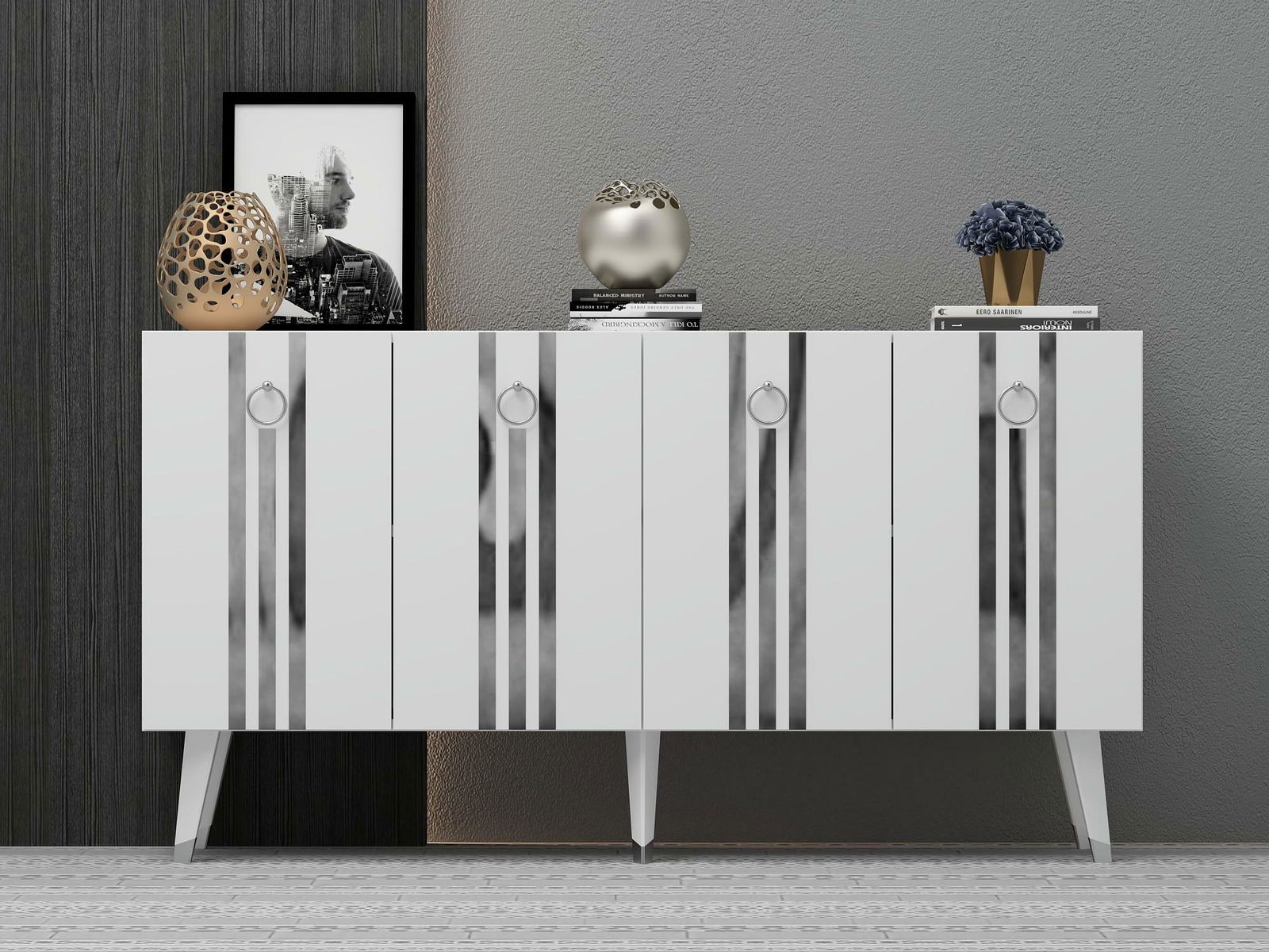 Skříňka Pometu (bílá + stříbrná)
