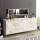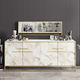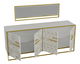 ZobrazitSkříňka - Poppy je elegantní a funkční kousek nábytku, vhodný do každé moderní domácnosti. S výškou 75 cm, šířkou 179.9 cm a hloubkou 47.3 cm poskytuje dostatek úložného prostoru pro uspořádání vašich věcí. Skříňka má kombinaci zlaté a bílé barvy, která dodává prostoru elegantní a stylový vzhled. Je vyrobena z kvalitních materiálů, což zaručuje její pevnost a odolnost. Skříňka - Poppy je ideální pro uskladnění oblečení, obuvi, knih nebo jiných předmětů. Svým moderním designem a praktickými regály je tato skříňka perfektním doplňkem vašeho interiéru.