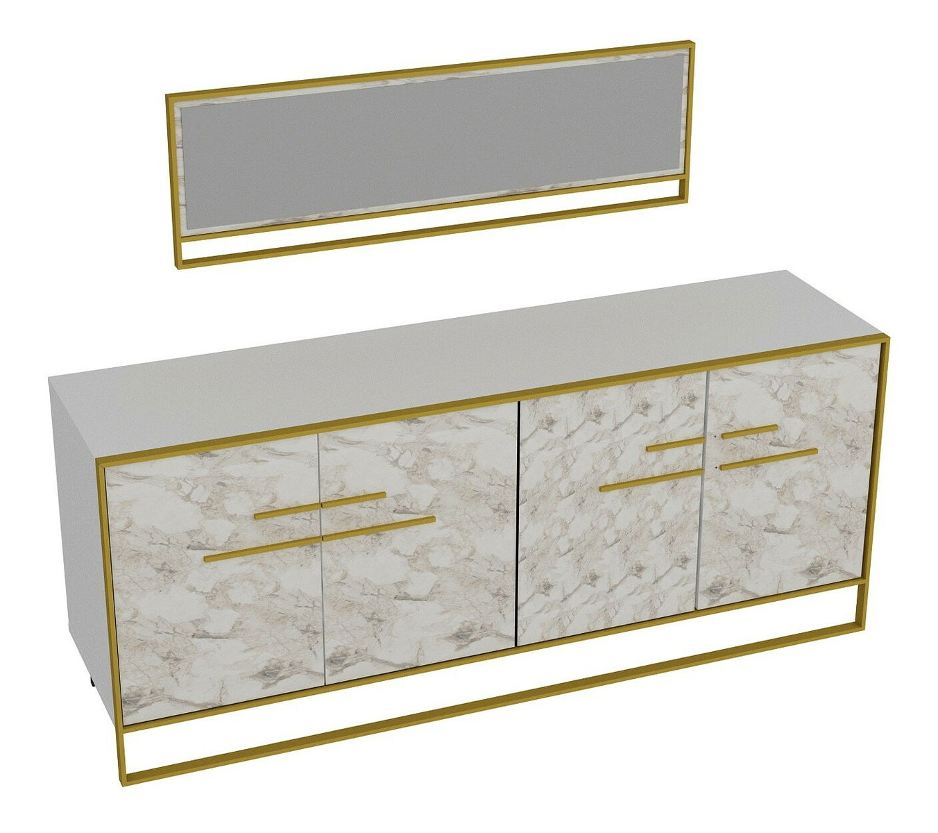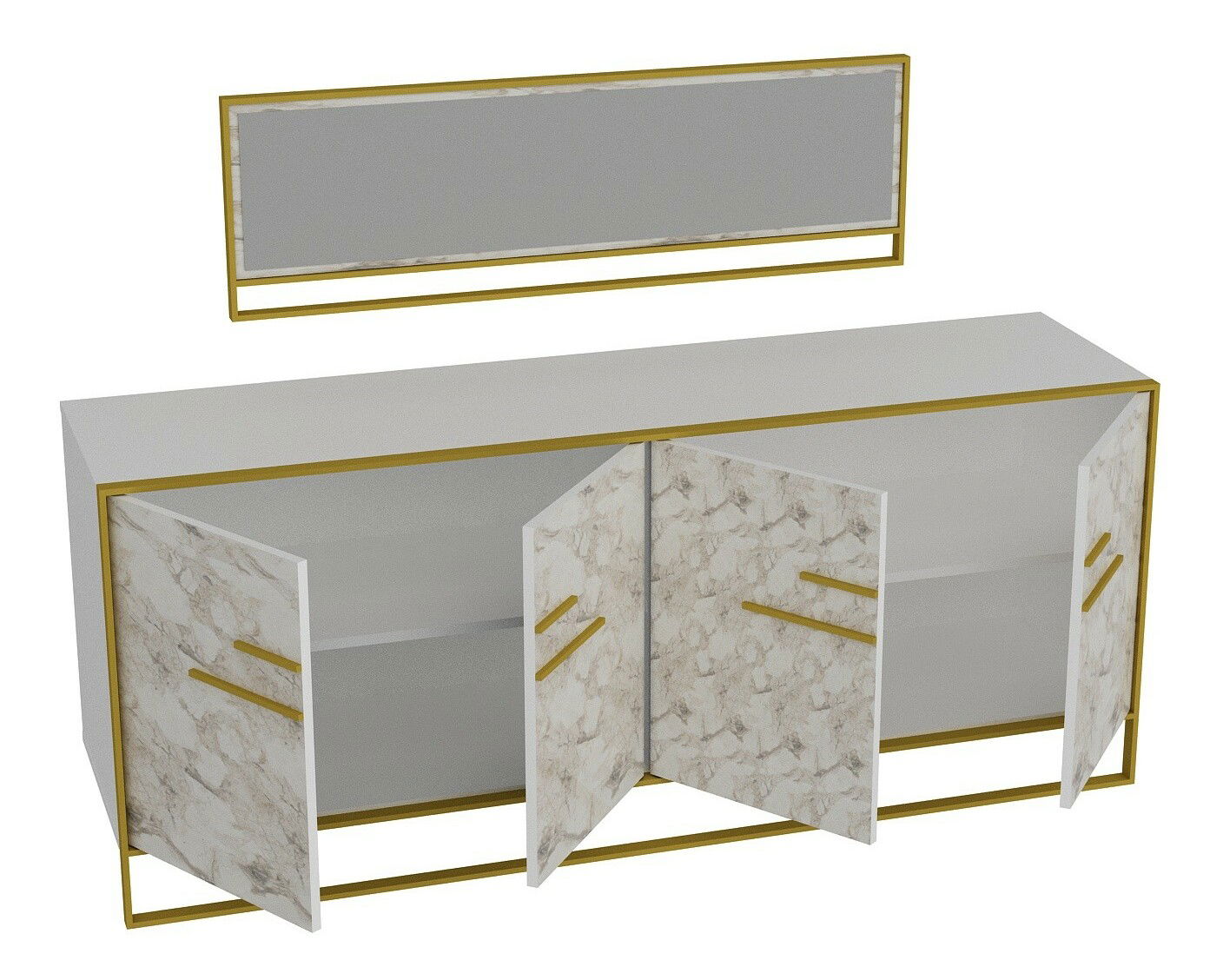 Skříňka Poppy (Zlatá + Bílá) (se zrcadlem)