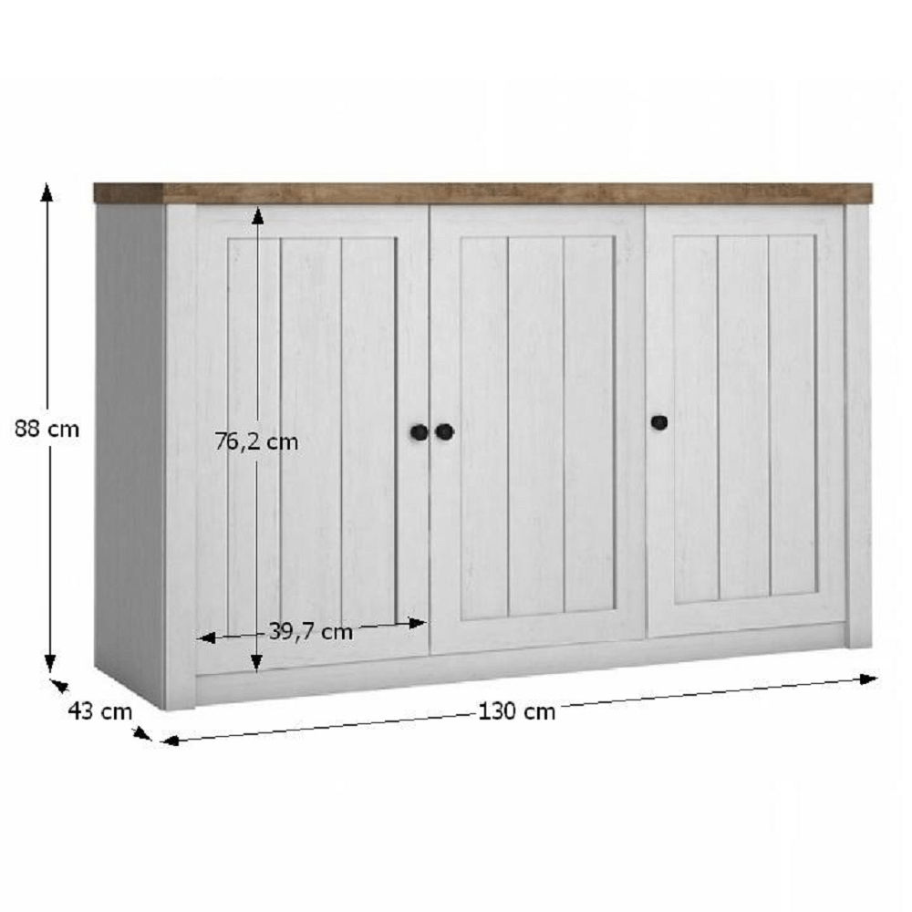 Skříňka Provense K3D o výšce 88 cm a hloubce 43 cm je vyrobena z přírodního dubu lefkas a sosny andersen. Tento výrobek má tloušťku materiálu korpusu 15 mm a vrchní desky 36 mm, což zaručuje jeho pevnost a odolnost. Skříňka je dodávána v demontu, což umožňuje jednoduchou montáž podle přiložených návodů. S tímto produktem získáte praktický úložný prostor s elegantním vzhledem, který bude skvělým doplňkem vaší domácnosti.