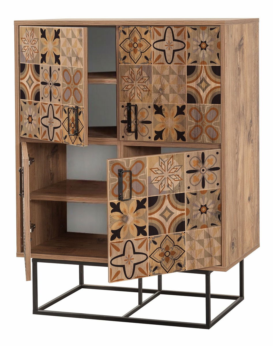 tloušťka: 18 mm, kovové rukojeti kovové nožičky šířka: 93 cm, výška: 115 cm, hloubka: 36 cm, výška police: 21 cm
