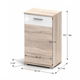 Trendová skříňka, která umí potěšit oko v každé místnosti. Vybavena je dvířky, za nimiž se nachází 1 polička. Horní část dvířek je v bílé barvě ve vysokém lesku, korpus a zbytek dveří je provedení dub sonoma. Úchyt je šedý a materiál je DTD laminovaná.