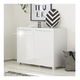 Zajímavá skříňka, která je vhodná do moderně zařízené obývacího pokoje nebo ložnice. Dvířka skříňky jsou diagonálně rozděleny a mají dlouhé tenké úchyty. Skříňka stojí na kovových nožkách.