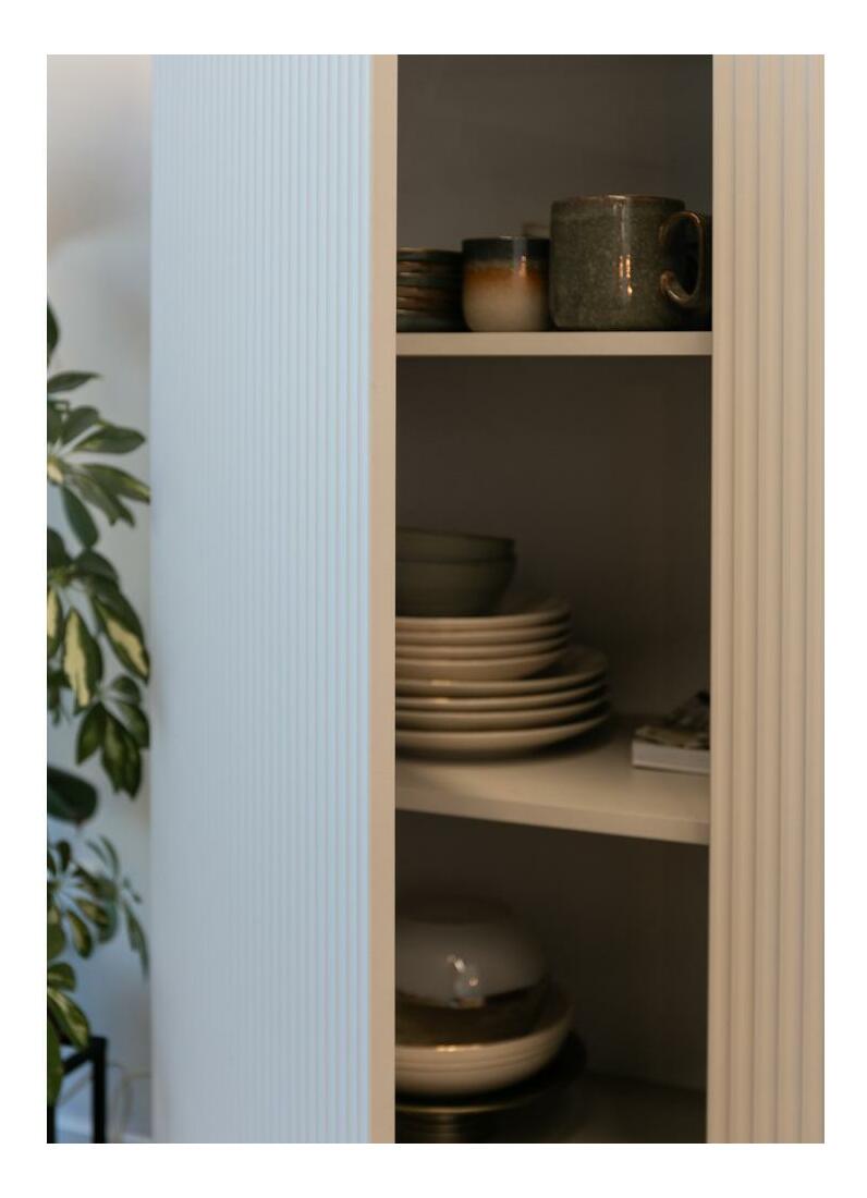 Zařizujete si svůj vysněný byt a na dokončení díla potřebujete ještě stylový nábytek? V takové situaci vám navrhneme naši jedinečnou kolekci – nábytek, který lhostejně neprojdete Komoda je spojením minimalismu s designérským akcentem v podobě módních lamel věc jedinečný charakter – v kombinaci s velkými barevnými rostlinami bude nábytek vypadat opravdu skvěle. Interiér je rozdělen do tří prostorných výklenků, do kterých se úspěšně vejdou důležité dokumenty, ale také oblečení a náhradní ložní prádlo. Chcete-li si pokoj personalizovat, důležité rodinné suvenýry či fotografie si nepochybně najdou své místo na široké desce skříňky. Další výhodou nábytku jsou pevné nohy v podobě rámu z prášku lakované oceli, které mu poskytují maximální stabilitu a zároveň jsou stylovým doplňkem do obývacího pokoje. Detail produktu: korpus skříně je vyroben z 16mm laminovaná deska U750 ST9 Grey Taupe, která je odolná proti vlhkosti a poškrábání, což zajišťuje dlouhé používání, lamely na přední straně jsou vyrobeny z MDF, čela skříněk se otevírají metodou push to open, nohy jsou vyrobeny z práškového- potažená ocel, s kluzáky zabraňujícími poškrábání podlahy.