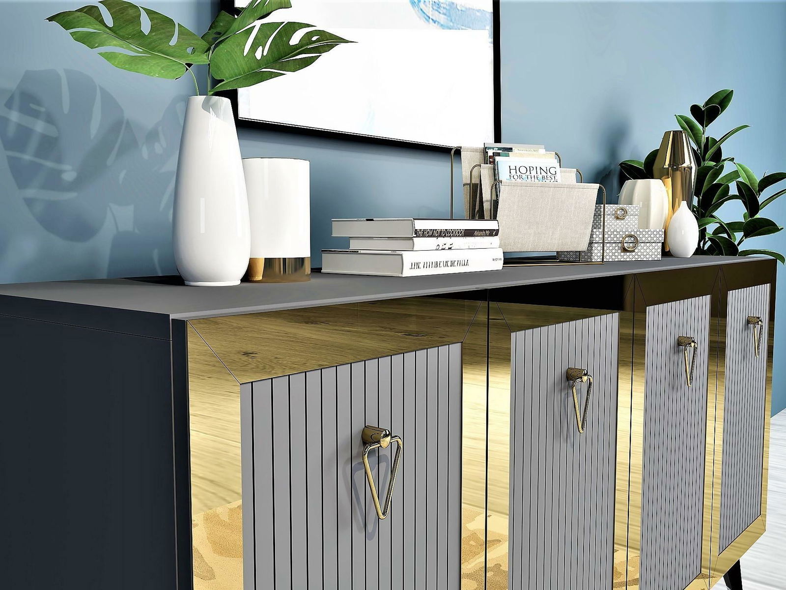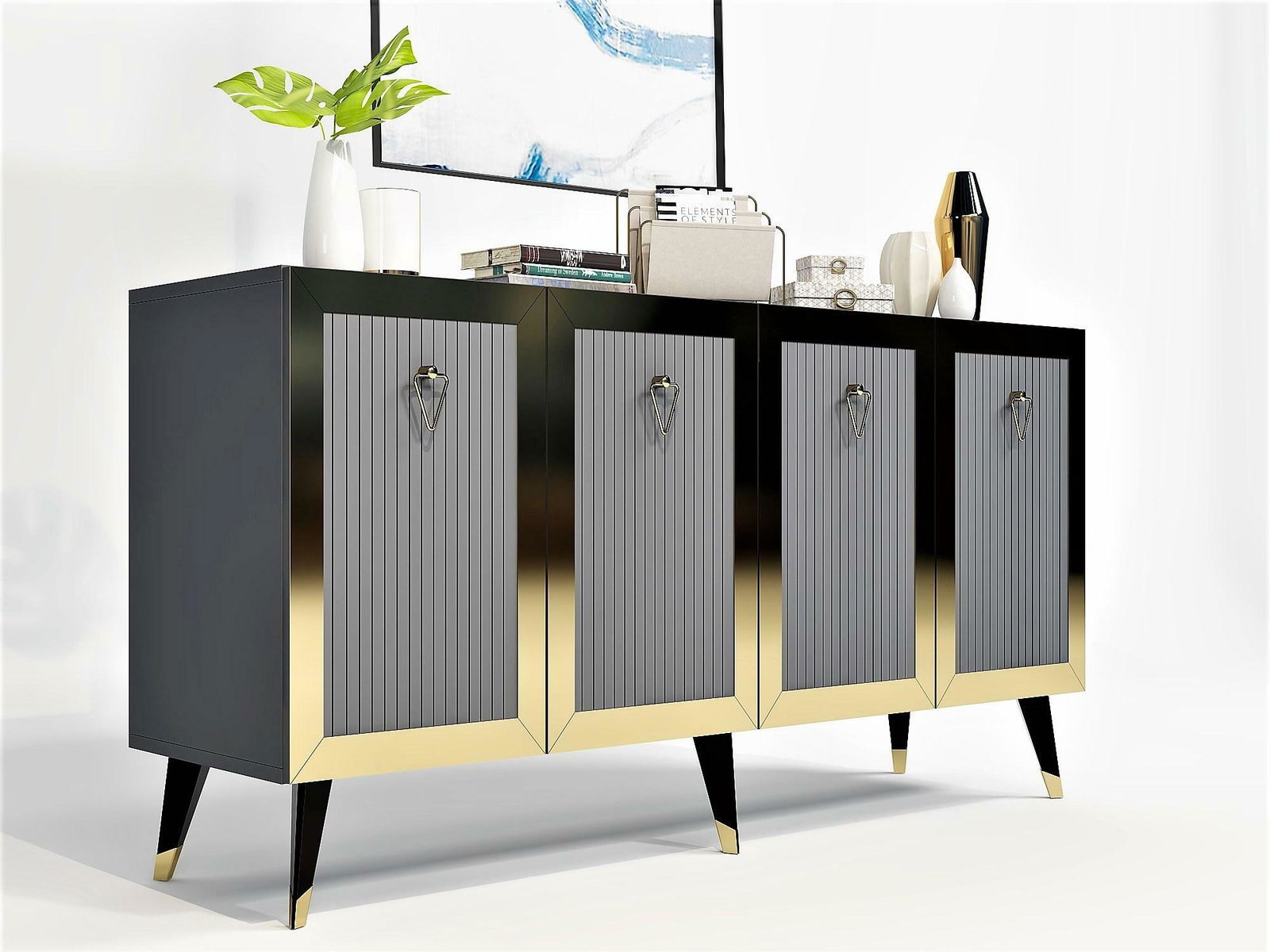 Skříňka Vopula (antracit + zlatá)