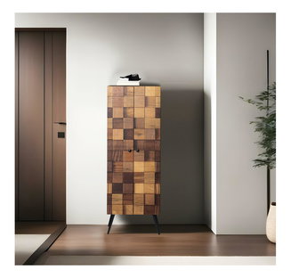 Úzké skříňky se vyrábějí z různých materiálů jako je dřevěný masiv, dřevotříska, případně jiný materiál a v nesčetných barevných variacích od dřevěných dubových dekorů až po lesklé černé povrchy. Některé skříňky jsou doplněny o skleněná dvířka nebo dokonce i o kolečka umožňující snadný přesun skříňky.