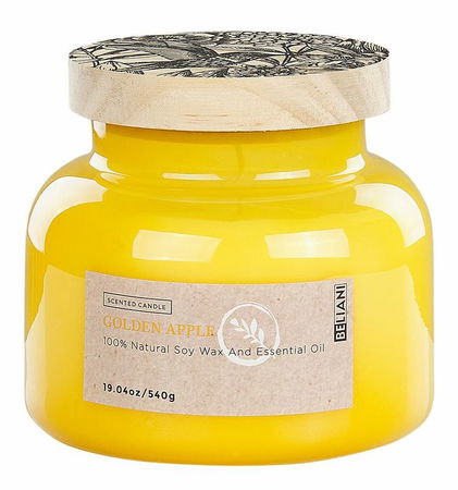 Dodejte svému interiéru svěží, přírodní vůni díky této svíčce. Je vyrobena ze sójového vosku a vydrží hořet dlouhé hodiny, přičemž místnost naplní nádhernou vůní jablka. Skleněná nádoba svíčky ve žluté barvě z ní dělá i skvělý dekorativní prvek, který po umístění na konferenční stolek jistě upoutá pozornost všech vašich hostů.
