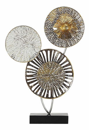 Tato kovová dekorace dodá vašemu interiéru nádech industriálního stylu, ať už ji položíte na komodu v ložnici nebo na krb v obývacím pokoji. Ručně vyrobená dekorace z odolného kovu představuje unikátní design, který propustí sluneční paprsky a na stěně vytvoří jedinečnou světelnou mozaiku. Dekorace ve stylové stříbrné a zlaté barvě bude vypadat skvěle v moderních i rustikálních interiérech.