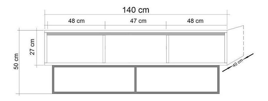 tloušťka: 18 mm, kovové nohy, velikost TV jednotky: šířka: 140 cm, výška: 50 cm, hloubka: 40 cm, velikost konzoly: šířka: 140 cm, výška: 72 cm, hloubka: 36 cm