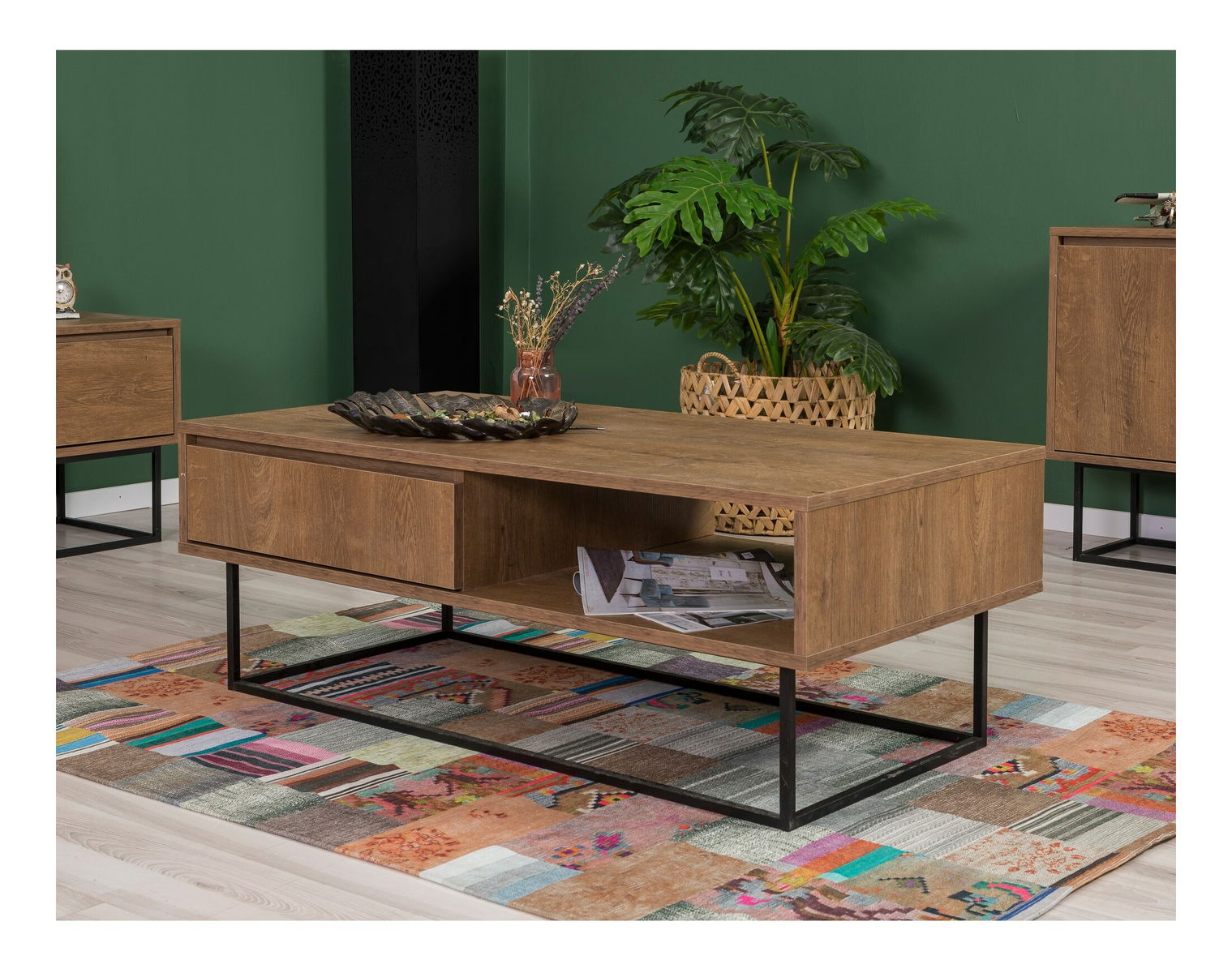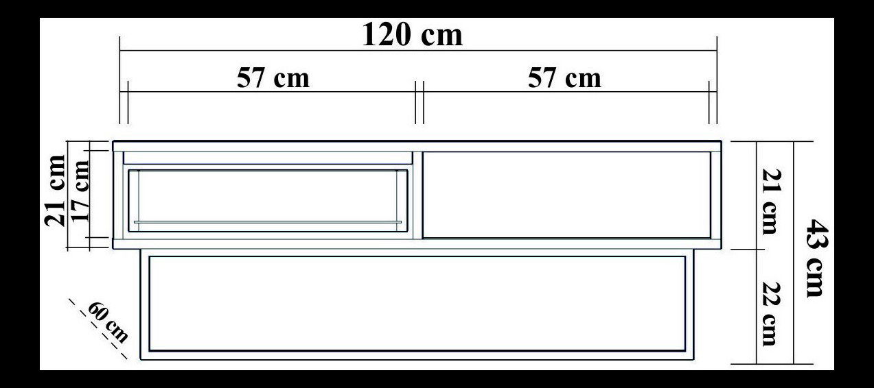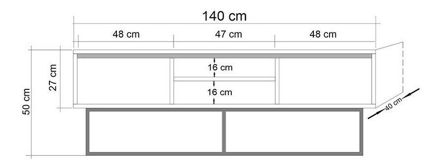 tloušťka: 18 mm, kovové nohy, velikost TV jednotky: šířka: 140 cm, výška: 50 cm, hloubka: 40 cm, velikost konferenčního stolku: šířka: 120 cm, výška: 43 cm, hloubka: 60 cm