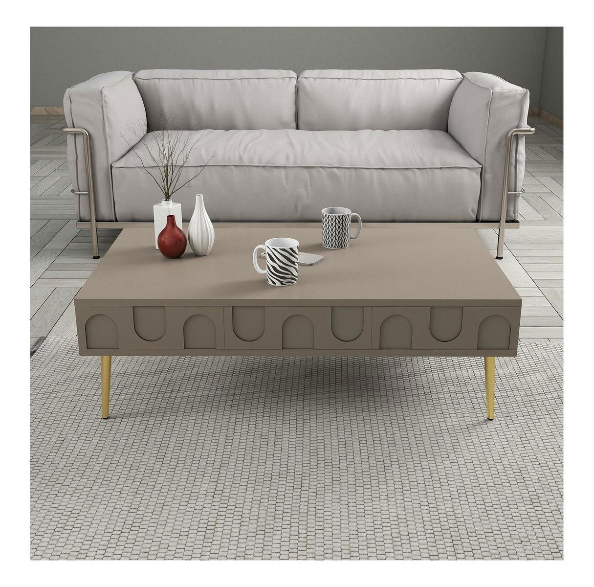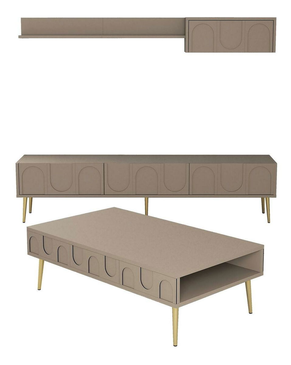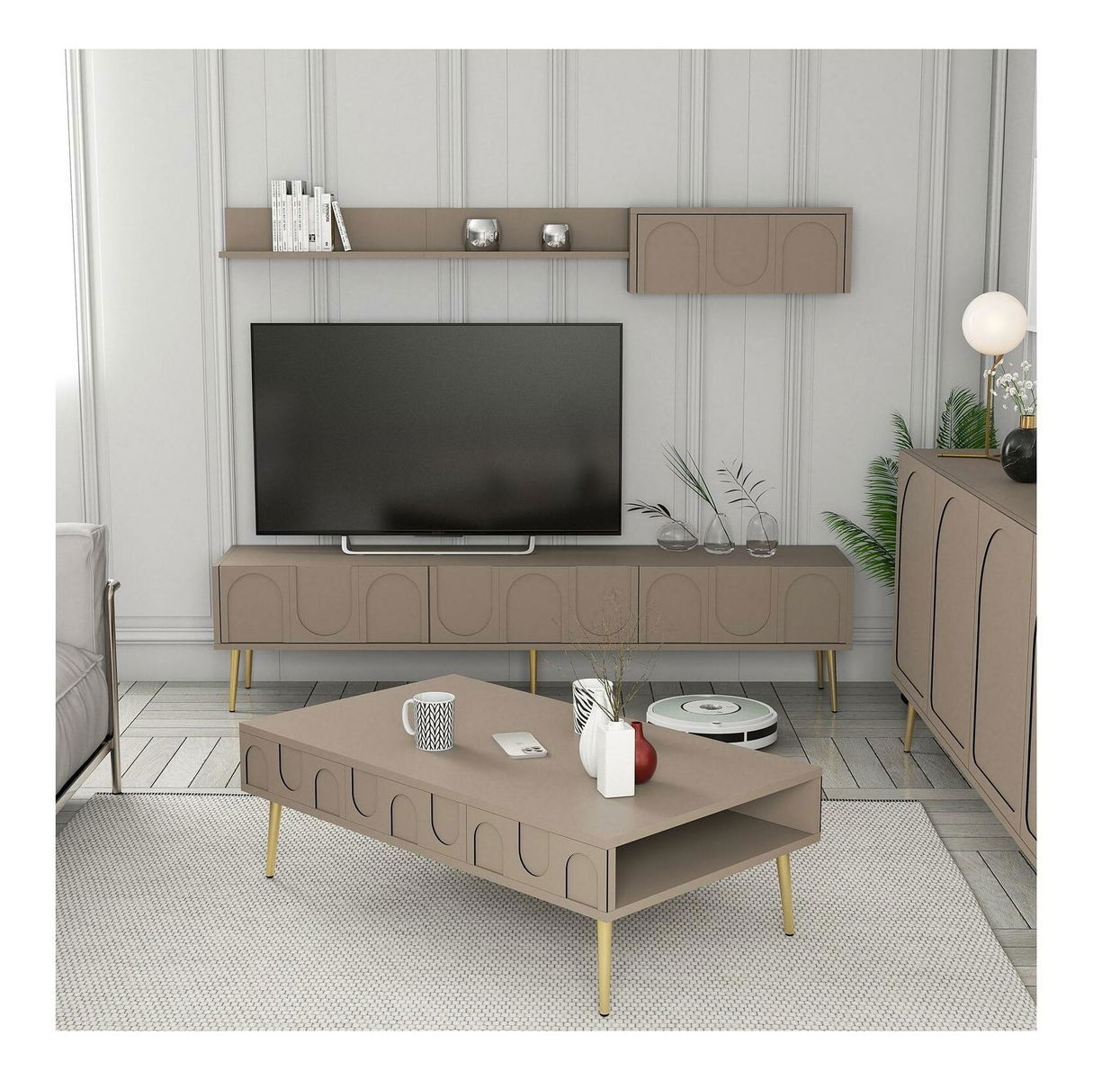Souprava nábytku do obývacího pokoje Lyantela (tmavobéžová + zlatá)