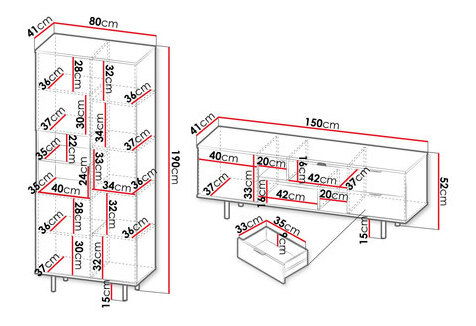 ZobrazitNeuvěřitelná estetika a praktičnost odlišují soupravu nábytku do obývacího pokoje Newelon III od jiných návrhů. Sestava obsahuje TV skříňku a vysokou polici. Decentní detaily v podobě zlatých úchytek a nožiček a frézovaných předních dílů působí elegantně a jedinečně. Souprava nábytku do obývacího pokoje se může stát ústředním designovým bodem vašeho obývacího pokoje. Souprava Newelon III má také praktickou stránku. Četné přihrádky a zásuvky nabízí prostor pro všechny potřebné předměty, od elektronických doplňků, přes oblečení až po dokumenty. Univerzální interiér je něco, co je vždy užitečné v obývacím pokoji, zejména v malém. Komfort používání zvyšují rychlomontážní panty se systémem tichého zavírání.