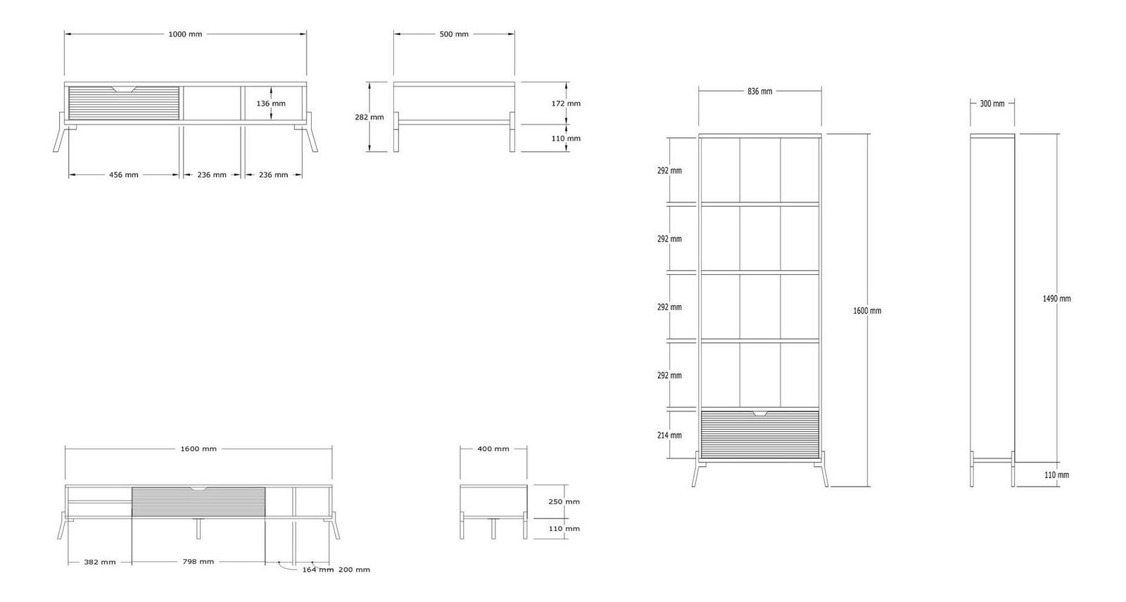 - Souprava nábytku do obývacího pokoje Ponusetta (dub safírový + antracit)