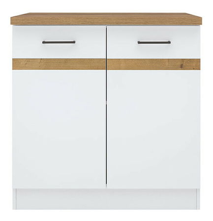 Spodní kuchyňská skříňka BRW Junona line D2D/80/82 (Bílá + Lesk bílý + Dub craft zlatý)