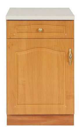 Doplňková skříňka kuchyňské řady NIKA. Obrázek je pouze ilustrativní - barvu a tvar dvířek je třeba vybrat ze vzorníku. Skříňka má malou zásuvku a levé otevírání. Uvnitř za dvířky je jedna polička. Skříňka je určena k postavení - má vlastní sokl. Namísto horní desky jsou jen lišty - určeno pro připevnění kuchyňské pracovní desky. Pracovní deska není v cene. Součástí dvířek jsou plastové úchytky.