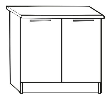 Dolní díl kuchyňské linky se dvěma dvířky.