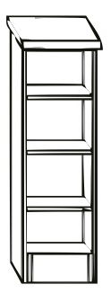 Dolní díl kuchyňské linky v provedení bez dvířek se třemi poličkami.
