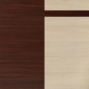Kuchyň je vyrobena z kvalitní dřevotřísky o tloušťce 15 mm. Korpus skříněk je v provedení Dub Wenge a fronty (dvířka) horních skříněk jsou v provedení Rijeka světla. Spodní skříňky jsou v provedení Dub Wenge v kombinaci se světlou barvou odstínu Rijeka světla. V balení se nachází pracovní deska (dle zobrazení na obrázku) vyrobená v provedení Rijeka světla s tloušťkou 28 mm s nalepenou odolnou ABS páskou na okrajích, která se nepoškodí i při největším zatížení. Tato ABS páska je hrubá 2 mm. Skříňky mají nastavitelné závěsy (panty).