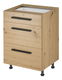 Spodní skříňka Langari D60S3 (dub artisan) o výšce 82 cm a hloubce 47 cm je vybavena systémem PUSH UP a dodává se s úchytkami. Můžete si vybrat, zda chcete skříňku s nebo bez úchytů, přičemž v případě výběru jsou dvířka a zásuvky vybaveny systémem tichého zavírání. Pracovní deska není zahrnuta v balení. Skříňka je vyrobena z DTD laminovaného materiálu o tloušťce 15 mm a má 3 zásuvky. Bez pracovní desky a spodní lišty, dodává se v demontu. Upozorňujeme, že skříňka je nutno smontovat samostatně.