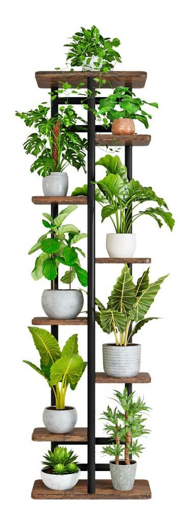 Stojan na květiny Laban 4 (tmavé dřevo + černá)