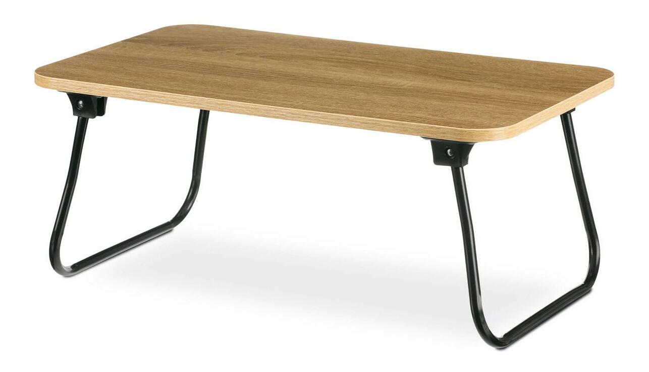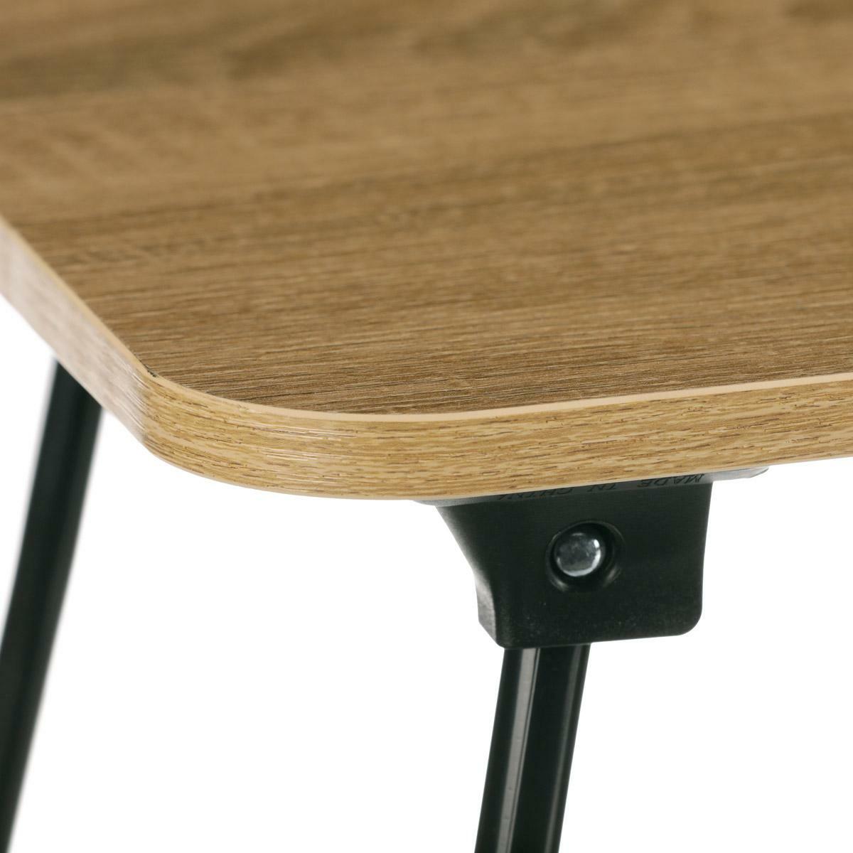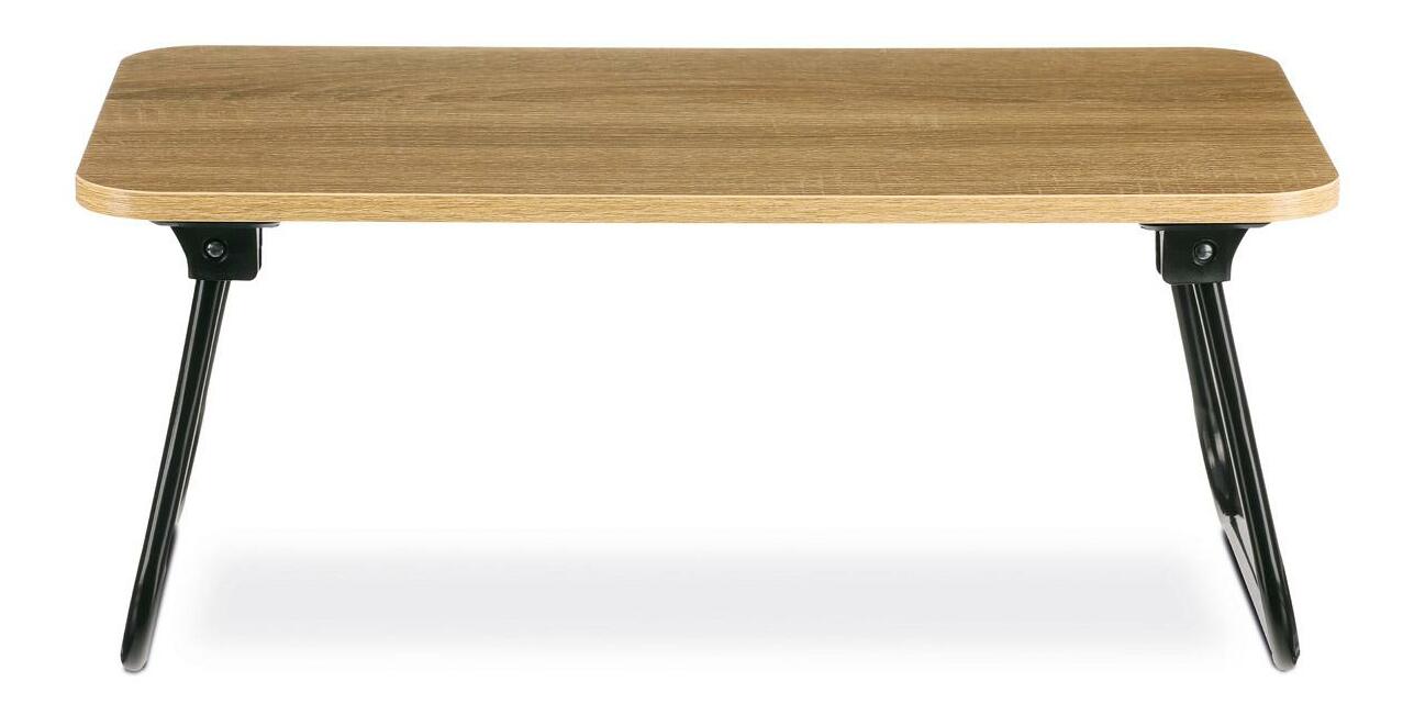 Skládací stolek značky kombinuje moderní industriální styl s praktickým využitím. Deska z MDF materiálu s dekorem dubu vytváří elegantní vzhled, ideální do obývacích pokojů či pracovních prostor. Skládací kovová podnož a černé nohy dodávají stolku jednoduchou manipulaci. Díky obdélníkovému tvaru a kompaktním rozměrům je stolek vhodný pro práci s notebookem nebo jako servírovací stolek. Tento stolek se stane praktickým doplňkem každého interiéru.