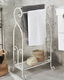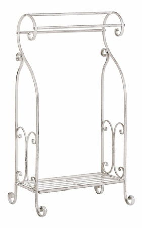 Tento koupelnový stojan se stane stylovým a zároveň praktickým doplňkem každé koupelny. Tři horizontální tyče jsou ideální pro sušení a věšení ručníků, zatímco polička ve spodní části nabízí extra úložný prostor. Díky bílé barvě a elegantnímu designu, který umocňují ozdobné prvky a povrchová úprava s opotřebovaným vzhledem, se stojan hodí do koupelen v klasickém a vintage stylu.