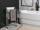Stojan na ručníky je výborným řešením, díky kterému bude vaše koupelna uklizená a přehledná. Nejenže nabízí prostor pro vysušení vašich ručníků, ale může být i poutavým kouskem vaší koupelny. Tento stříbrný stojan je vyroben z odolné oceli, je nenáročný na údržbu a je ideální do každé moderní koupelny.