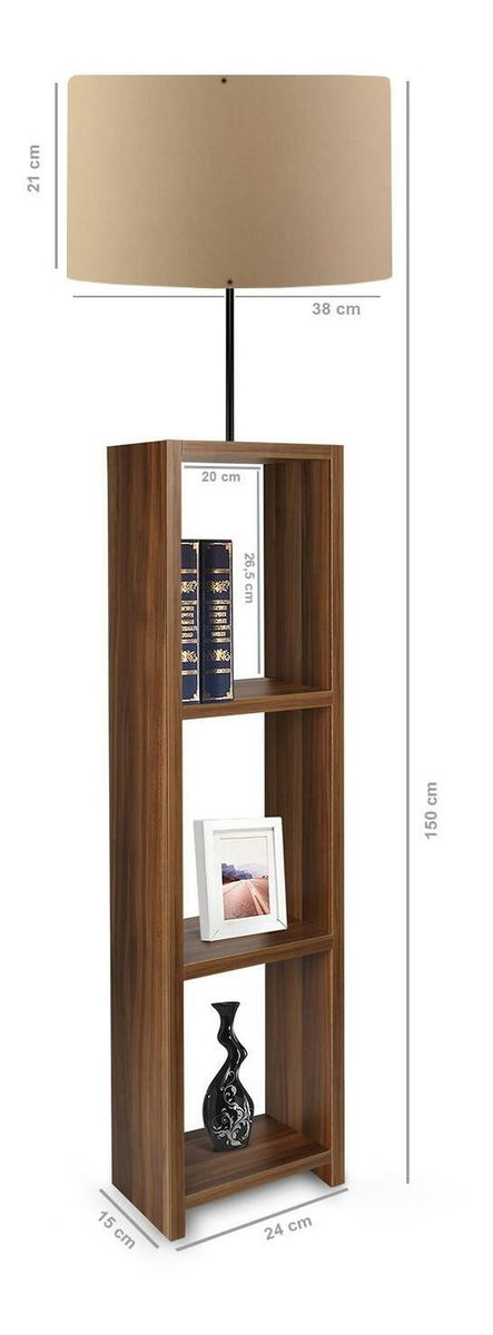 Stojanová lampa s policemi Astaresta 7 (světlohnědá + tmavé dřevo)