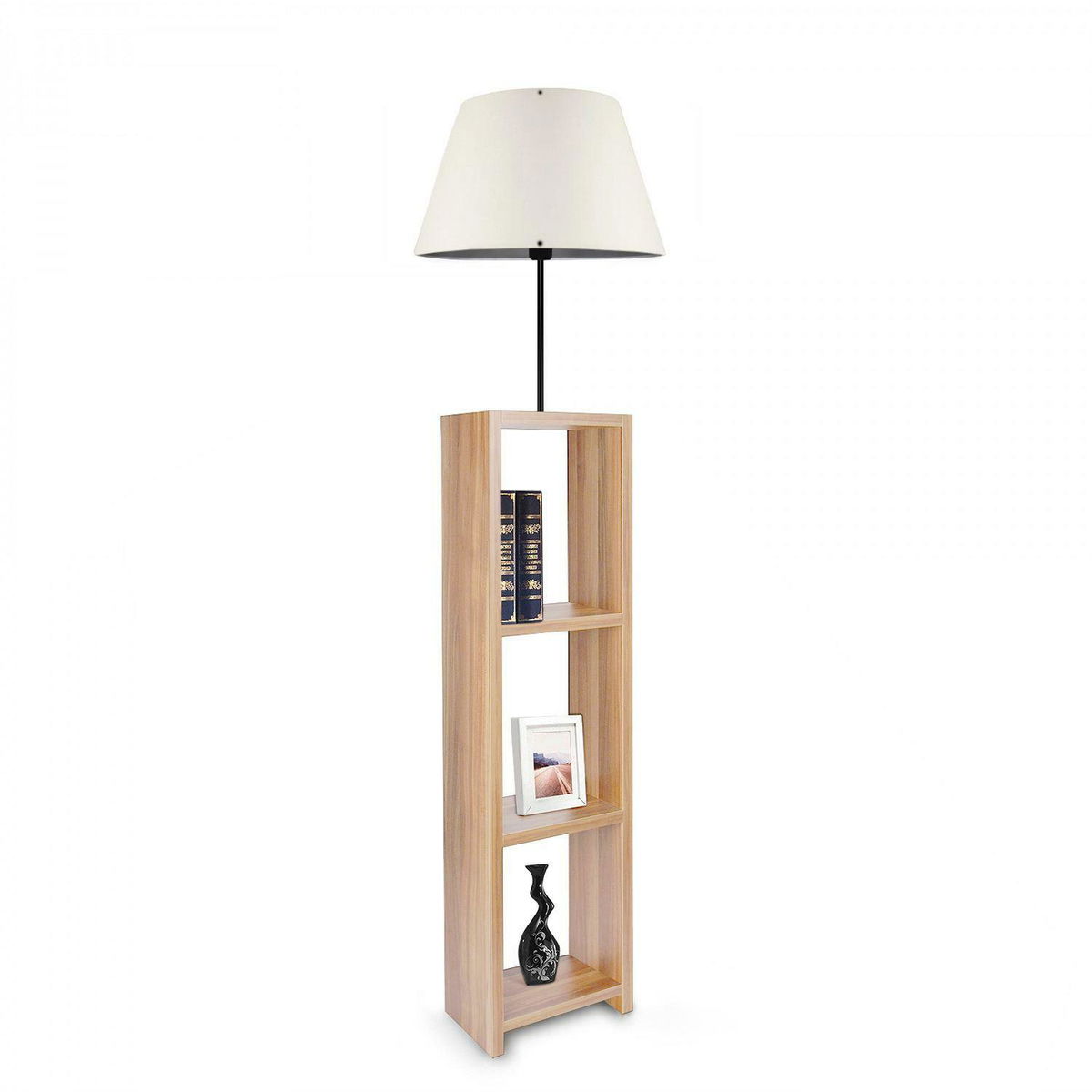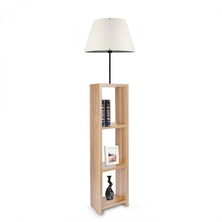 Stojanová lampa s policemi Astaresta 8 (krémová + světlé dřevo)