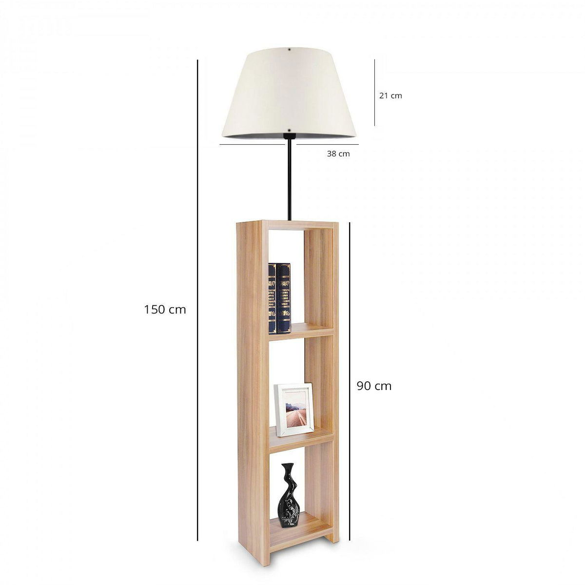 - Stojanová lampa s policemi Astaresta 8 (krémová + světlé dřevo)