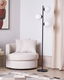 Zkrášlete svůj domov pomocí této stojací lampy v netradičním tvaru se třemi skleněnými stínítky. Její univerzální černý odstín dokonale zapadne do interiérů zařízených v klasickém nebo moderním stylu.
