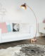 Tato všestranná stojací lampa výborně poslouží jako světlo pro čtení v domácí knihovně nebo jako zdroj okolního světla nad pohovkou či jídelním stolem. Rameno ve tvaru oblouku doplňuje kupolovité stínítko v měděné barvě, díky čemuž svítidlo zapadne do každého moderního interiéru. Díky nastavitelnému stínítku lze světlo snadno nasměrovat na požadovanou plochu.