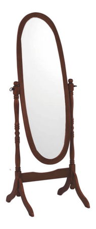 Moderní a neobyčejné stojanové zrcadlo Antalia dokáže výborně vyniknout v každé ložnici či předsíni. Luxusní masivní dřevo v barvě ořech sladíte s jakýmkoli typem nábytku. Je oválné, bez ostrých rohů a hran, dokonale splňuje doporučení podle feng shui. Dostatečně velké, abyste se v něm viděli od hlavy k patě. Zrcadlo vám díky snadno nastavitelnému sklonu poslouží v každém ohledu. Tento kousek se stane oblíbeným kusem nábytku nejednoho člena rodiny. Dotvoří váš interiér do detailu.
