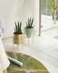Nechte své květiny ještě více vyniknout a vystavte je v tomto stylovém stojanu na rostliny. Zlatý železný podstavec dokonale ladí s mátově zeleným květináčem a do interiéru vnáší nádech stylu glamour. Umístěte jej na parapet, komodu nebo balkon, vložte do něj oblíbenou květinu a těšte se z krásné dekorace.