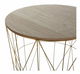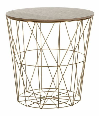 Tento moderní a univerzální příruční stolek doplní jakoukoli místnost v interiéru. Své využití najde nejen v obývacím pokoji, ale také v ložnici nebo na chodbě. Díky zlaté drátěné konstrukci a odnímatelné stolové desce v barvě světlého dřeva je ideální volbou do místností s omezeným prostorem, neboť nabízí dostatek úložného prostoru na deky, knihy nebo různé jiné drobnosti.
