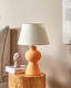 Pomocí této stolní lampy s keramickým podstavcem bez námahy vylepšíte atmosféru ve svém interiéru. Oranžový podstavec s podmanivým geometrickým designem vnese do jakékoli místnosti nádech elegance. Tato lampa, doplněná vkusným lněným stínítkem ve tvaru bubnu, vyzařuje teplou příjemnou záři, díky čemuž se stane dokonalým doplňkem vašeho domova.