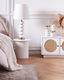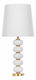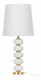 Tato elegantní stolní lampa vyniká poutavým podstavcem sestávajícím z oválných prvků na zlatém stojanu. Bílé látkové stínítko dodává celému designu jemnost a charakter. Lampa je ideální pro čtení nebo studium a bude vhodným doplňkem do obývacího pokoje, ložnice nebo kanceláře. Součástí je také průhledný kabel s vypínačem.