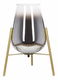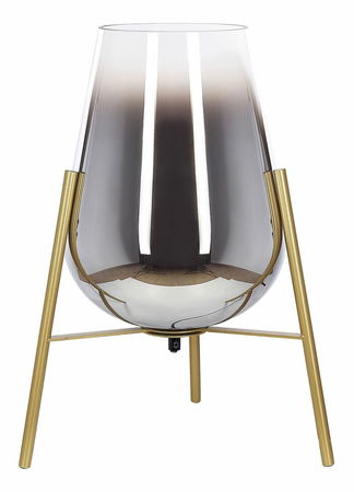Rozzařte svůj interiér touto dekorativní a poutavou stolní lampou. Třínohý zlatý podstavec je vyroben z kvalitní oceli, díky čemuž je odolný, a stínítko lampy je vyrobeno z poloprůhledného kouřového skla, které vypadá okouzlivě. Díky svému jedinečnému designu je skvělým doplňkem do moderních a industriálních interiérů.