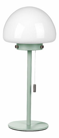 Vylepšete vzhled své domácí kanceláře s touto poutavou stolní lampou. Polokulaté skleněné stínítko v bílé barvě doplňuje světle zelený kovový stojan. Díky svému designu jistě upoutá pozornost a výborně zapadne do obývacího pokoje nebo ložnice zařízené v retro nebo moderním stylu. Lampa se dá jednoduše zapnout a vypnout díky vypínači na šňůrce.