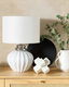 Tato stolní lampa inspirovaná klasickým francouzským designem je dokonalou kombinací moderního stylu a nadčasových tvarů. Bílý keramický podstavec se stříbrným detailem dodá špetku elegance každému obývacímu pokoji, ložnici nebo domácí kanceláři. Klasické stínítko se díky kvalitnímu materiálu snadno čistí. Lampa vytváří hřejivé osvětlení a zkrášlí každý stolek, polici, komodu nebo jídelní stůl.