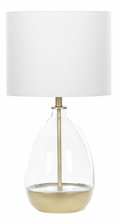 Tato elegantní stolní lampa je ideálním doplňkem každé ložnice v moderním, minimalistickém či glamour stylu. Má jemný skleněný podstavec, který je obohacen o zlaté detaily a bílé látkové stínítko. Tento nádherný kousek vytvoří v interiéru poklidnou atmosféru a vnese do něj teplé a příjemné světlo. Umístěte ji na noční stolek nebo komodu a dodejte svému interiéru příjemný vzhled.