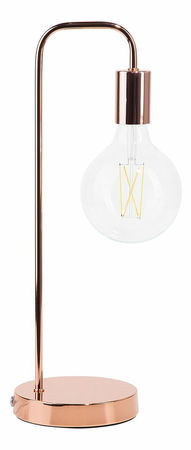 Tato krásná stolní lampa je dokonalým doplňkem do vaší ložnice, domácí kanceláře nebo obývacího pokoje. Skvěle se hodí jako jasné světlo pro čtení díky své odhalené žárovce a ohnutému rámu a navíc dodá každému interiéru stylovou industriální a moderní atmosféru. Minimalistický tvar je vizuálně zjemněn zaoblenými rohy a vytváří odvážnou a zároveň jemnou kompozici. Měděný povrch s vysokým leskem doplňuje celý vzhled.