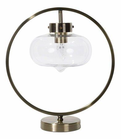 Proměňte svůj interiér s touto jedinečnou geometrickou ambientní stolní lampou. Je vyroben z kovu zlaté barvy a hodí se do každého moderního nebo industriálního obývacího pokoje, ložnice nebo kanceláře a zároveň dodá zajímavý šmrnc jiným stylům designu, jako je pop-art nebo boho. Čistá kompozice kruhového rámu a průhledné skleněné stínítko vám umožní vychutnat si vystavenou designovou žárovku. Lampa vytváří jasné bodové světlo ve vašem pokoji, zanechává ji živou a dobře zvýrazněnou.