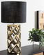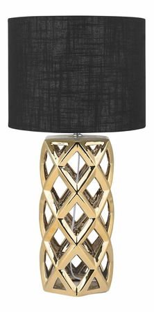 Dodejte svému okolí moderní nádech s touto velkolepou ambientní stolní lampou. Díky poutavé, elegantní zlaté barvě natřené otevřenou základnou, se bude dobře hodit do každého interiéru. Vyrobeno z vysoce kvalitní keramiky, je velmi odolné. Lampa se dodává s černým stínítkem ve tvaru bubnu, které umožňuje jemné rozptýlení světla.
