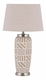 Rozehřejte váš interiér béžovými barvami a příjemným osvětlením. Tato dekorativní stolní lampa si najde své místo v rohu velkého obývacího pokoje nebo na nočním stolku v ložnici.