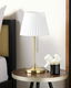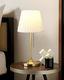 Doplňte vzhled svého interiéru touto jednoduchou, ale velmi elegantní stolní lampou. Její látkové stínidlo vytváří příjemné okolní osvětlení, které večer krásně osvětlí celou místnost. Kovový stojan zaručuje stabilitu lampy a retro vypínač na šňůrce jí dodává elegantní nádech.